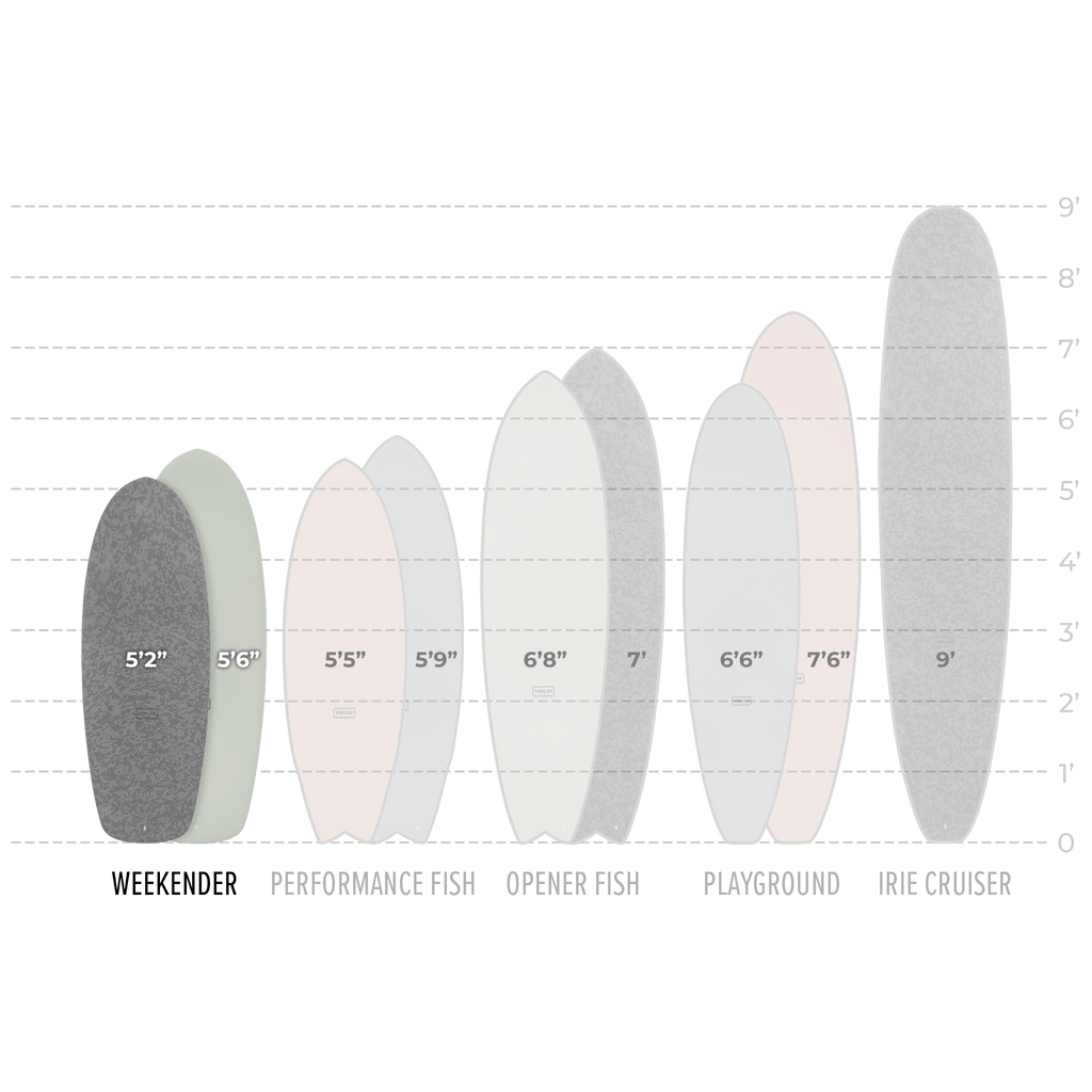 Inspired by Bob Simmons’ groundbreaking design, the Weekender is our rendition of the mini-Simmons. Contrary to its atypical appearance, the mini-Simmons is recognized as one of the fastest planning hull surf craft. The wide/parallel outline provides stability, unbelievable wave-catching ability and gets the board flying down the line with minimal effort. The unexpected short length combined with quad fins, allows this super fast board to fit in the pocket and curl of the wave yet maneuver shockingly well with minimal drag. Merging these concepts with a modern approach, The Weekender is so fun you're going to want to keep it a secret.